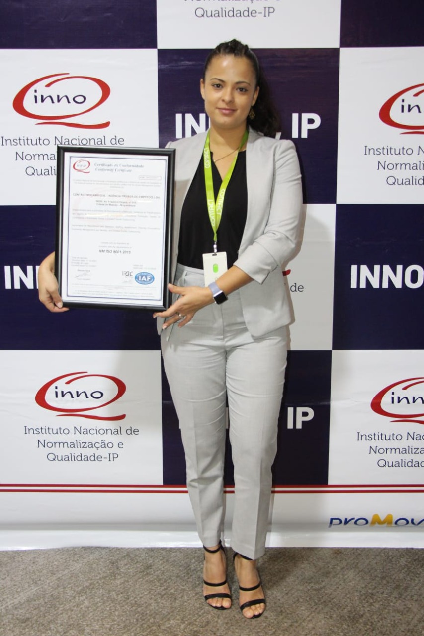 A CONTACT, empresa de referência na oferta de soluções de recursos humanos em Moçambique, recebeu os certificados de conformidade pelos referenciais normativos NM ISO 9001 (Sistemas de Gestão da Qualidade) e NM ISO 45001 (Sistema de Gestão de Saúde e Segurança Ocupacional). Estas certificações foram atribuídas pelo Instituto Nacional de Normalização e Qualidade, Instituto Público (INNOQ, IP) no passado dia 14 de Outubro, em Maputo, durante o seminário alusivo à celebração do Dia Mundial da Normalização.